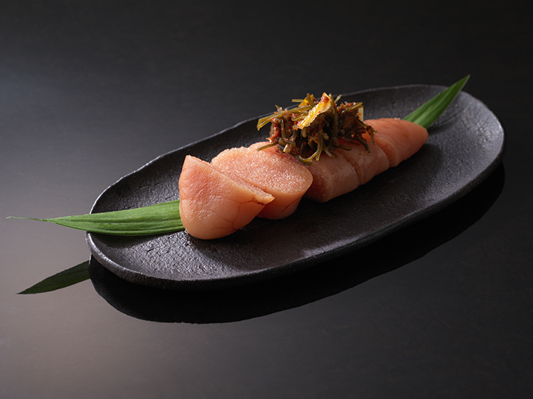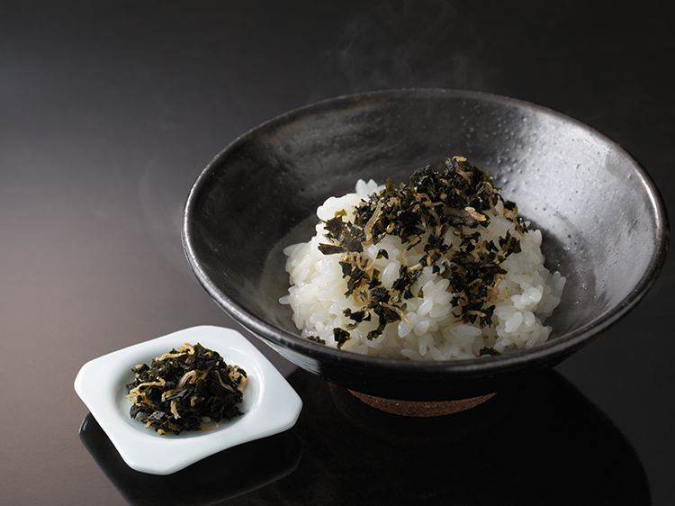まずは温かいお粥からお召し上がりください。四季の野菜、魚を用いた椀物や煮物など各種そして自家製のカラスミでお客様の舌をもてなします。最後は土鍋ご飯で、至福のひと時を。